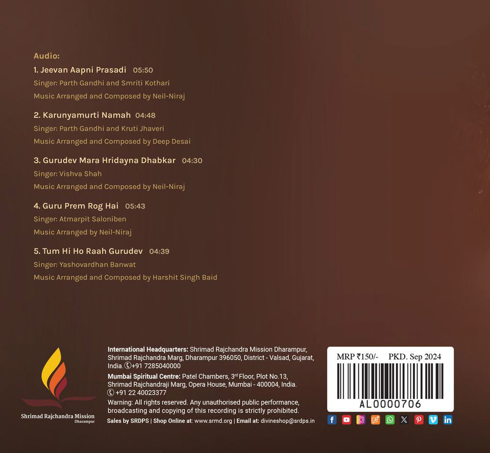 Jeevan Aapni Prasadi is a collection of five soulful compositions, each echoing the ceaseless love of the beloved Master.