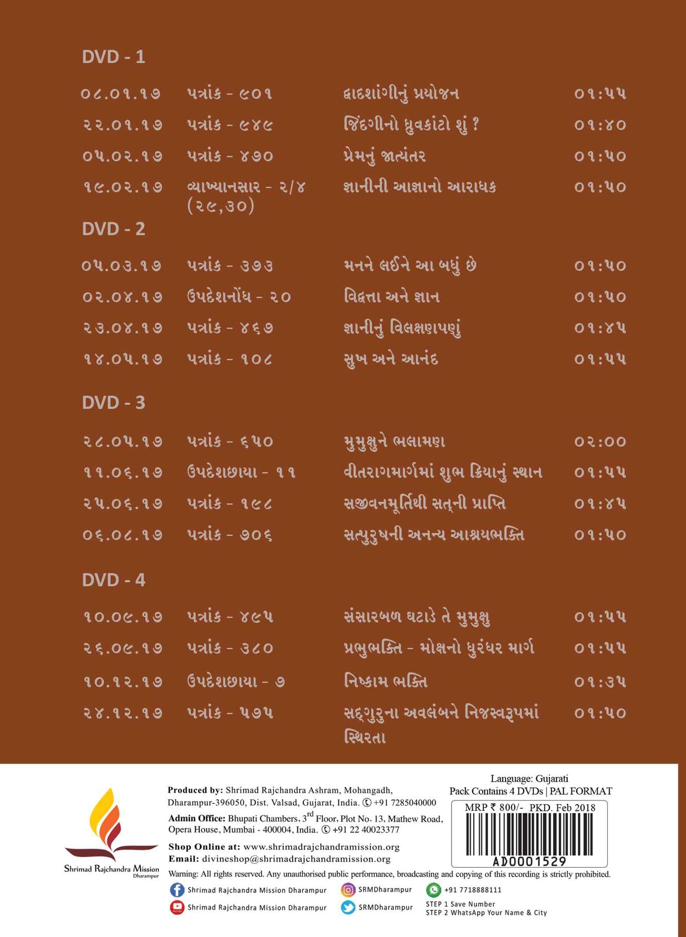 Shrimad Rajchandraji's spiritually inspiring writings are collected in a volume which is fondly known as 'Vachanamrutji'. Alternate Saturdays witness discourses by Pujya Gurudevshri based on this sacred text. Filled with practical examples and delivered in simple everyday language, His profound discourses are directed straight to the heart of the seekers, to bring about a transformation.