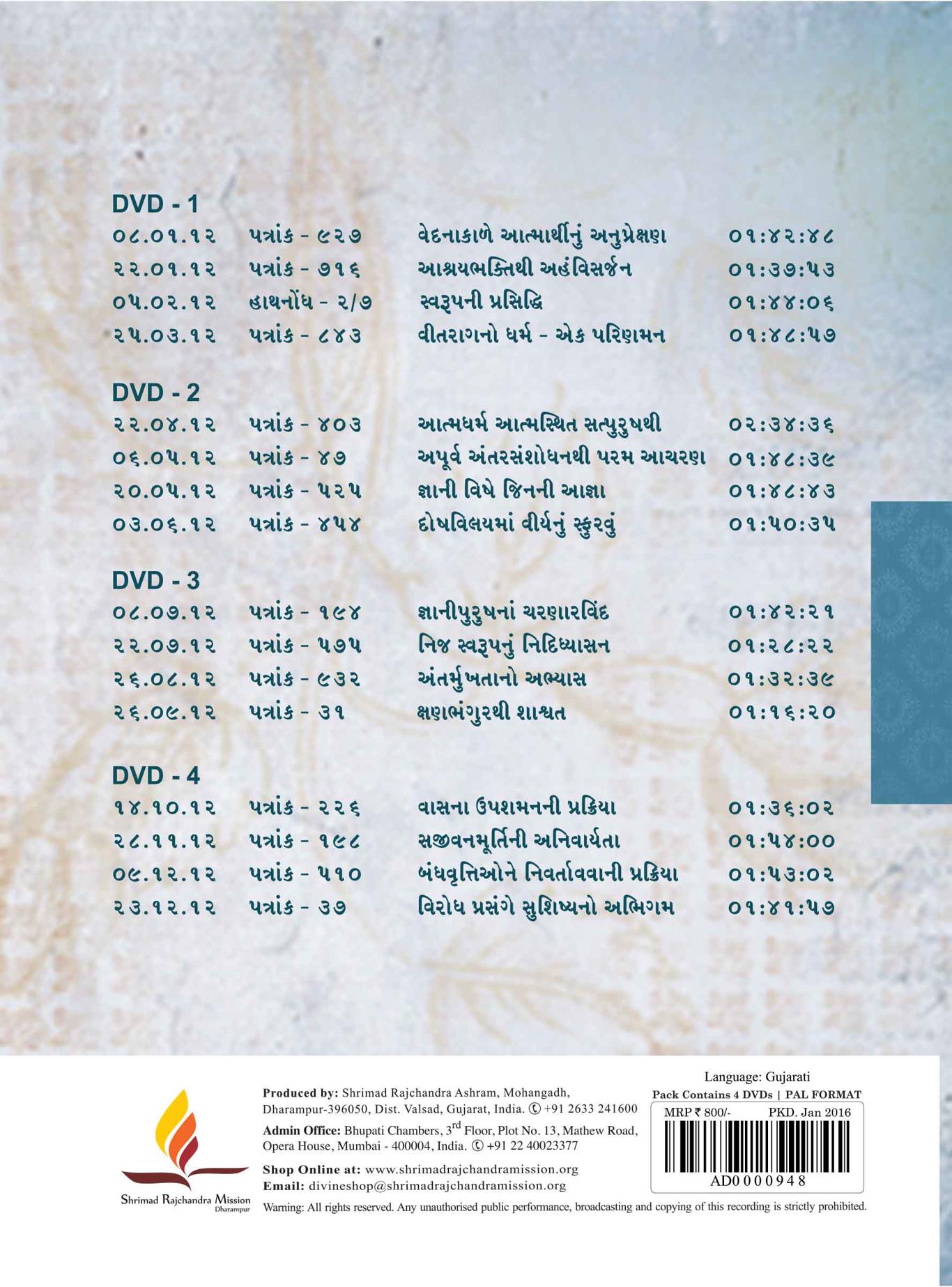 Shrimad Rajchandraji's spiritually inspiring writings are collected in a volume which is fondly known as 'Vachanamrutji'. Alternate Saturdays witness discourses by Pujya Gurudevshri based on this sacred text. Filled with practical examples and delivered in simple everyday language, His profound discourses are directed straight to the heart of the seekers, to bring about a transformation.