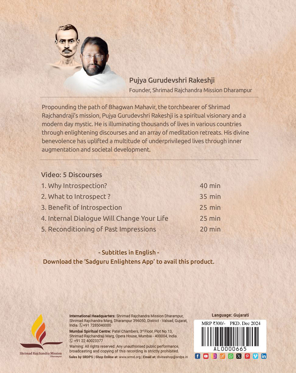 This is a transformative series of discourses that inspires the powerful practice of introspection. Crafted to nurture self-awareness and foster inner growth, these teachings guide you to reflect on your thoughts, actions and beliefs.